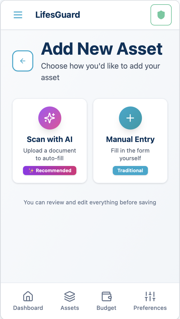 Take control of your personal asset management with LifesGuard. Organise important documents, track assets, and manage key information securely in one place.